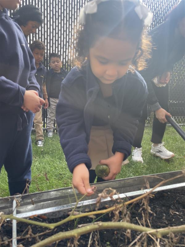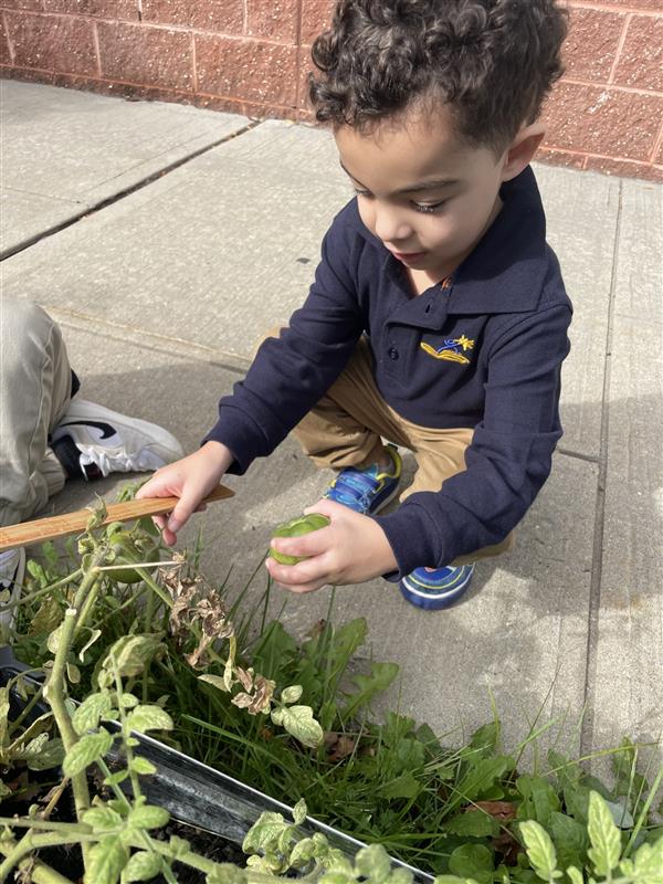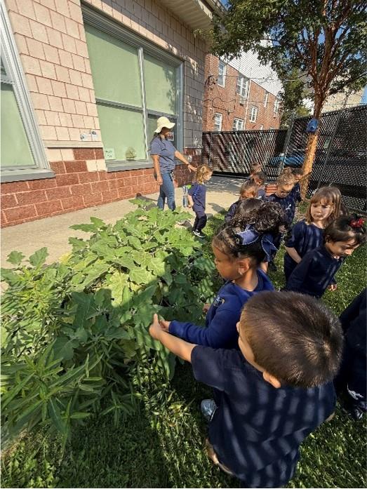During the months of September and October,the students were very busy upon the start of our school year tending to our new garden. The pictures show them happily harvesting the ripened vegetables and caring for the plants. This project taught our students many aspects of caring for a garden as well as the entire growth process of seeds flourishing into plants that provide food for us to eat. We yielded enough produce to share with the classrooms and we donated a bag of vegetables to the First Baptist Church on Union Avenue in Elizabeth. The children were especially excited in being a part of feeding people in need. We will soon be closing the boxes and prepping them for next spring.