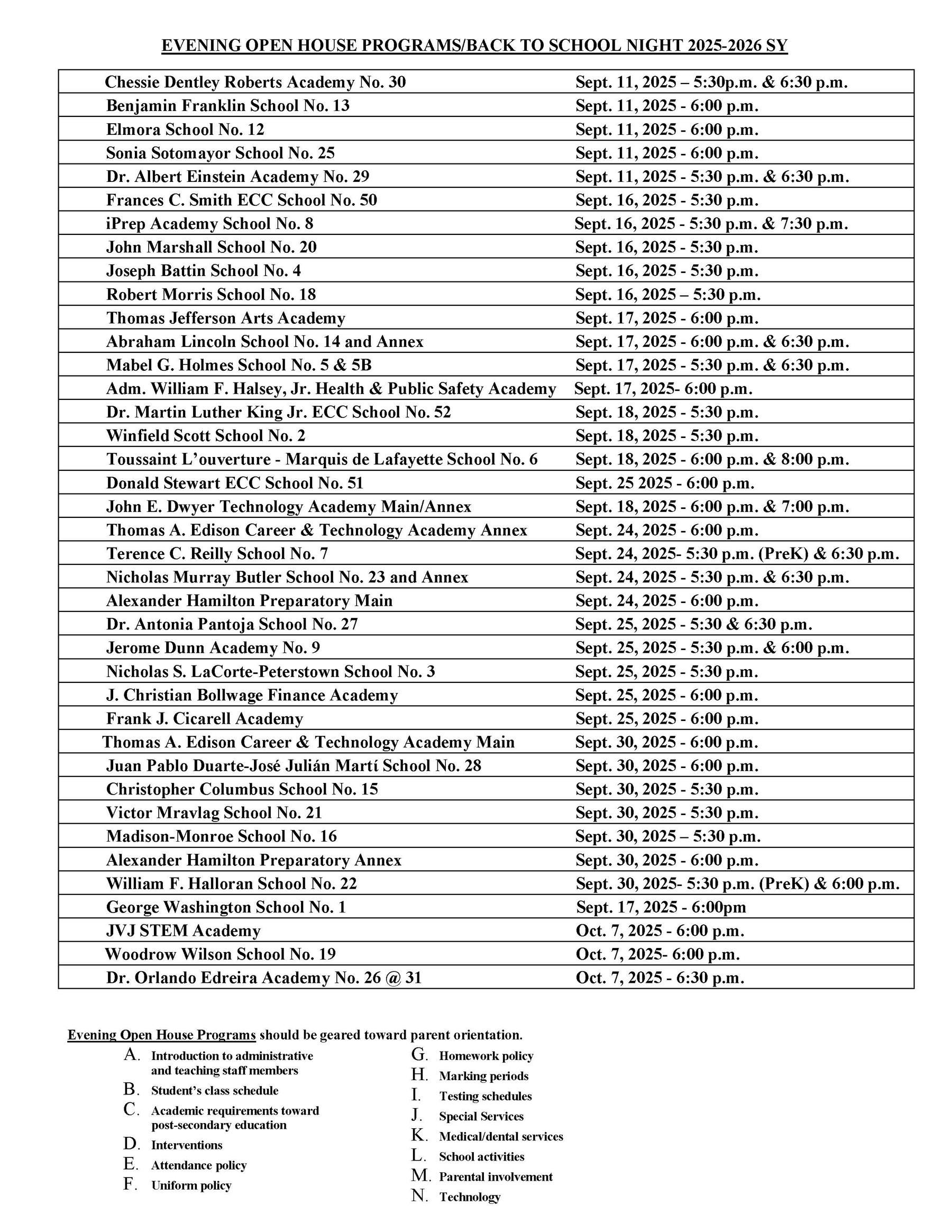 Parents, we are asking for both your cooperation as well as your support in regards to your child’s adherence to the uniform policy. Students who do not adhere to the school uniform policy will not be permitted to enter the building on Thursday, September 4th or any school day thereafter. Please do not hesitate to contact the main office if you should have any questions with respect to the uniform policy.