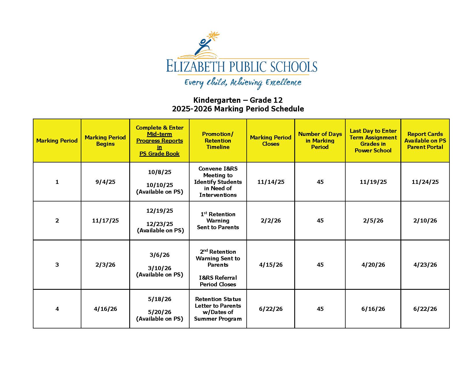 Marking Period Schedule
